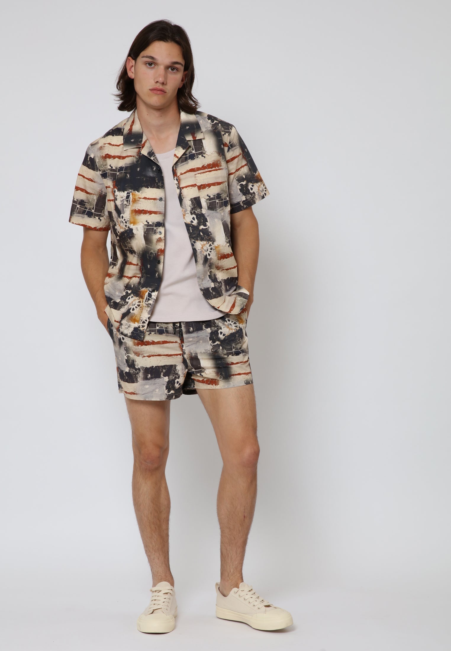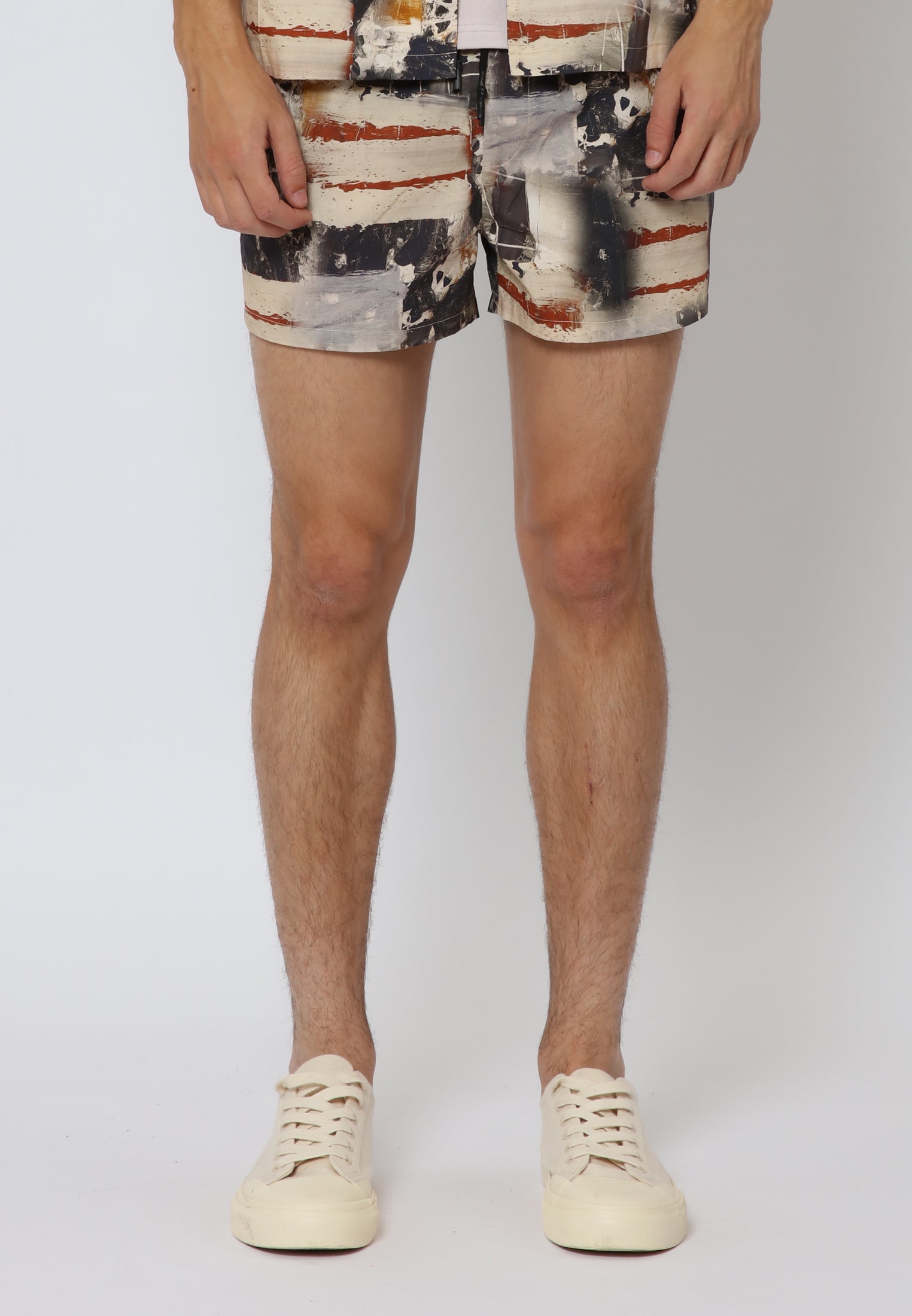 Make a bold statement with our Abstract shorts. Featuring an elastic waist and drawstring for a perfect fit, these short shorts combine style and comfort effortlessly. The abstract print adds a touch of uniqueness, while the three pockets and Religion tab branding complete the look with both functionality and flair.