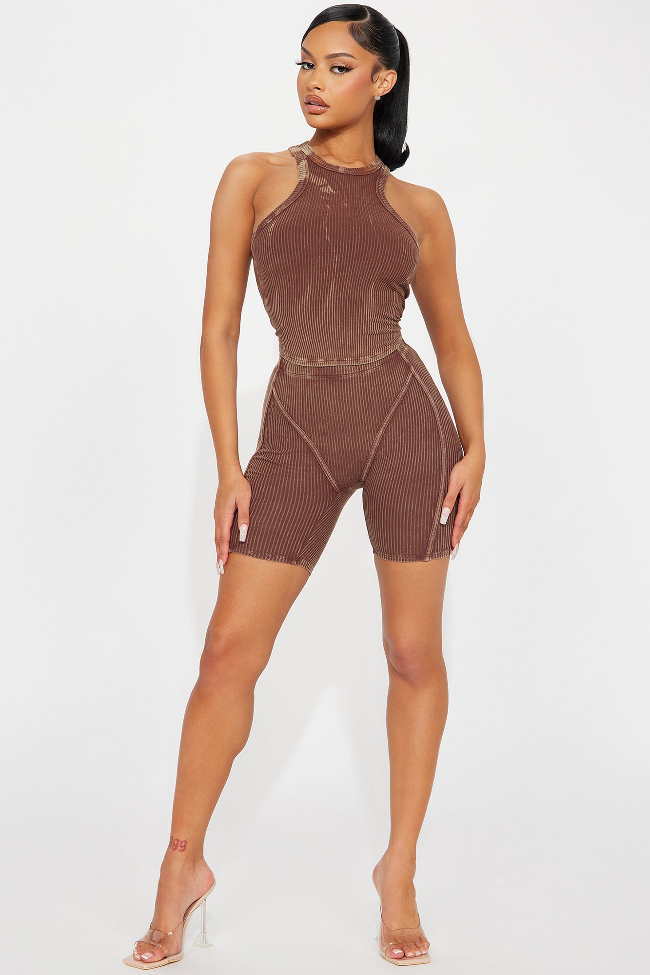 Erin Ribbed Biker Short Set - Chocolate