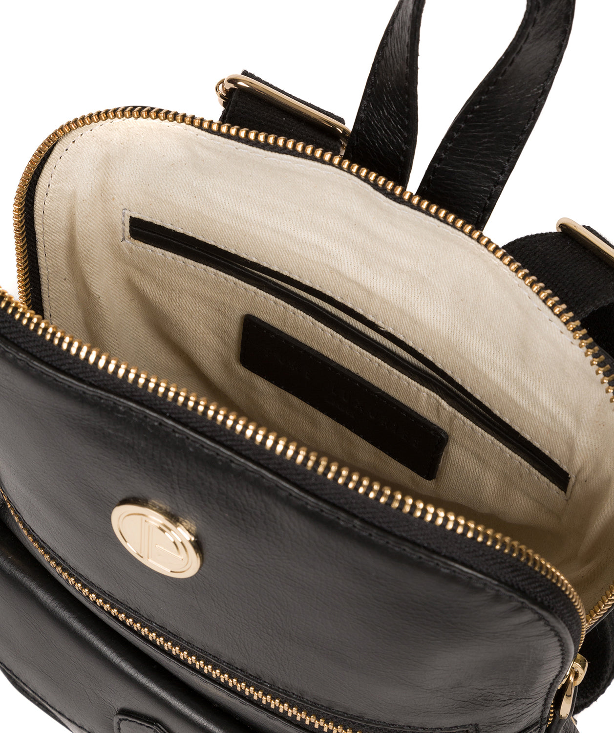 A mock buckle conceals a magnetic press stud which secures a spacious zipped pocket which is perfectly complemented by a zipped pocket - both ideal for on-the-go storage